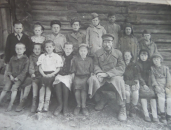 Нижний ряд слева на право: Шейко Евгений, Петрожицкая Евгения, Далецкая Зина, посередине в шарфике - Петрожицкая Тамара, Дубинина Валя, учитель - Закалинский Константин Егорович, Трасковская Саша, Людаговская Женя (?)