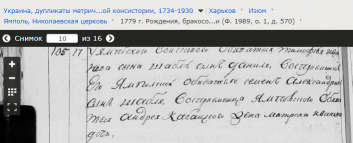 18 апреля 2022 12:57 Приветствую всех, случайно наткнулся на фамилию Шабля в метрической книге города Сумы в Пророко-Ильинской церкви за 1850 год, может кому-то будет полезно. Трофим Пантелемон Шабля https://www.familysearch.org/a...at=1009710 | | |