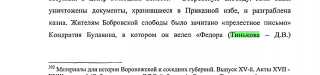 Жителям Бобровской слободы было зачитано «прелестное письмо» Кондратия Булавина, в котором он велел «Федора (Тинькова — Д.В.)