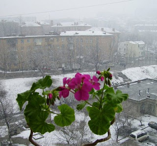 Снег идет, снег идет. К белым звездочкам в буране Тянутся цветы герани За оконный переплет.