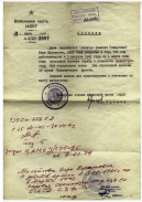 Красноармеец ДОХВАТУЛИН Норислан, татарин, 1900 года рождения, Бешелонгар(?) (Уфа), призван 24.08.1941 в Молотове.