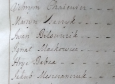 [q] Добрый день! Прошу помочь прочитать фамилию. Иван Бе....(фото из разных годов инвентаря). Польский, 1712 год Подозреваю как "Беловежик"