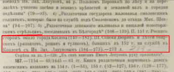 *Перечная роспись служивых людей, устроенных на житье в Козлов. лл.206-220
