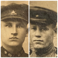 Почему спросила? Я логик и помимо сравнительного анализа всегда оперирую фактами))) Молодой человек с фото с надгробия одет в кожаную куртку или плащ, фуражку, есть знаки отличия на воротнике. В очках. Очень много критериев для опознания. Похоже на форму РККА. Фото молодых людей. Обычно на могилах состарившихся людей не принято размещать их фотографии в молодости. Значит, умерли оба молодыми. Взрослый мужчина " пережил" возраст военного на фото, значит, это не он. Юноша имеет овальный тип лица, у молодого с надгробия лицо ближе к треугольному типу. И по возрасту они не очень далеки друг от друга. Если это фото из Вашего архива, то надо смотреть документы - носил ли очки, когда призывался, где служил... Это чтобы удостовериться, что это один и тот же. Совпадений по датам на сайтах памяти предостаточно.. Не понятно, кого мы ищем. Одного и того же? Или родственные связи между ними?