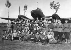 Белорусский фронт. аэр. Зябровка 21 апреля 1944 года. Слева направо: начштаба 265 БАО капитан Ефимов Константин Васильевич, помкомполка 265 БАО капитан Брытков Алексей Александрович; замполит 265 БАО майор Чалый Василий Андреевич, комполка 34 бап майор Новиков Василий Андреевич, замполит 34 бап подполковник Цибульский Александр Тарасович, комполка 265 БАО подполковник Блинов Николай Александрович.