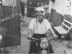 Двор дома семьи Колывагиных, который у нас назывался просто "проходной". На заднем плане ворота, которые выходили на главную улицу. На мотоцикле Кормаков Геннадий Евтихиевич.