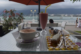 Великий кофе на морской веранде. Батум, как кекс, нарезан на куски. А сливки по утрам невероятно, Невероятно, сказочно густы.