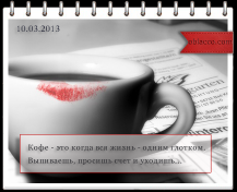 За чашечкой кофе всегда вам составлю компанию, Чтоб кофе привычно вело к одному - к пониманию.