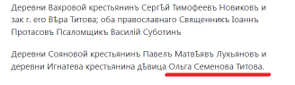 Elena2000 написал:[q] Очень хотелось узнать девичью фамилию прабабушки Веры Титовны, но в метриках ее отец указан по Имени и Отчеству, получается это не возможно? https://cgamos.ru/metric-books/203/203-780/203-780-1709/ Отец Тит Семенов, правильно ли я понимаю, что это отчество, а не фамилия?