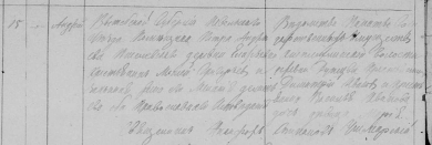 Воспреемники: Могилёвской губернии Шамовской волости деревни Назаровки солдат Иван Дорофеев и деревни Кукаркина солдатская жена Марфа Стефанова