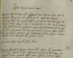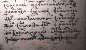 Деревня Великая Поляна на ручью на Кипринском а в ней крестьяне Двор Жданко да Кондрашка Матфеевы да Жданков сын Первушка да за ними на лготе место Ивашка Июдина Двор Федоско Тимофеев да сын его Майко Двор на лготе Куземка Григорьев (л.133) Двор Бориско Семенов Двор Ивашка Микитина ... и того жребея дано на лготу Степанку Никонову ... порука Оксенко Пуляев сын Балда да Ивашко Васильев сын Чаронской ??розсынщнию??