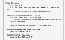 Svetiola написал:[q] Добрый день. Подскажите, пожалуйста, в каких фондах, описях искать информацию по детским домам Сызрани и может там есть списки детей-воспитанников начиная с 1932г? Моя бабушка Кашкарова (варианты написания Кошкарева) Раиса Георгиевна, 1932 г.р., уроженка Сызрани. Она воспитывалась в детском доме, сколько себя помнила. Хочу найти информацию как она туда попала и кто ее родители. В справке о ее рождении кроме фамилий в графах отец/мать Кашкаров/Кашкарова ничего не указано.[/q]