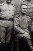 На общей фотографии в среднем ряду пятый справа тоже с непокрытой головой, и с похожими погонами, на груди имеет знак отличия (может полковой знак) пока не могу разобрать какой. Вообще поиск информации начинает походить на некий детектив. В семье о Александре Николаевиче практически не говорили, о службе в армии в ПМВ никогда (его дети) в автобиографиях не упоминали, все ограничивалось словами " Служащий , умер в 1917 от брюшного тифа ". И на этом вся информация, фотографии до 70х годов никому не показывали , прятали в сундуке дорожном под стопками тряпок. Происхождение писали мещане, прабабушка в 70 х годах рассказала , что семья купеческая. Вообщем в советское время многое скрывали, я честно говоря не уверен что и причина смерти тиф, нет ни похоронки не акта свидельства о смерти никаких документов, хотя на других родственников все бумаги сохранили.