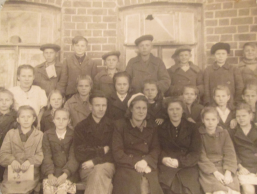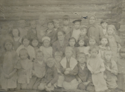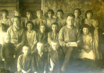 Школа села Борисоглебское Костромской области, 1930-е. Учитель в центре - Высоцкий Леонид Сергеевич. Погиб в 1942 г. под Старой Руссой. В левой части фото - его сестра, учительница Высотская Манефа Сергеевна. Фамилия писалась по-разному.