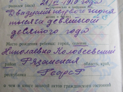 [/q] А какой год? Это важно - "нарезка" Рязанской области (губернии) сильно менялась.Как дословно в свидетельстве написано? А еще посмотрите печать на свидетельстве - там может быть что-то полезное про место выдачи. Давайте в личку переместимся, а то тема-то про помощь волонтеров ;-) Или переместите пост куда-нибудь в сторону рязанской тематики.