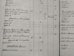 лет. Дети: Лев 18 летМаремьяна 15 лет, Аверкей 13 лет, Козма 10 лет, Маремьяна 9 лет, Софья 8 лет, Фекла 7 лет, Ирина 6 лет Лука и пелагия по 5 лет. У него ж на подворье вдова Степанида Матвеева 40 лет, сын Архип 15 лет, Марко 14 лет, Оксинья 13 лет, Евсей 12 лет, Устинья 11 лет, Ерефей 10 лет