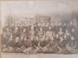 Не совсем. Фотография - из семейного архива. На обороте были указаны имена и фамилии. Пишу "были", потому что сейчас прочитать фамилии практически невозможно. Список выпускниц - из фонда 363 Москвы. Пока удалось расшифровать и идентифицировать со списком лишь несколько имён и фамилий учениц. Преподаватели - только имена и отчества (но отчество тоже плохо читается). Фамилии вообще не видны.