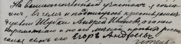 В документах дела есть интересная пометка – обозначено, кто из хозяев земель грамотный. Оказалось – половина. В их числе Иван Харитонов, почерк которого мы видели раньше и Егор Иванов – мещанин, живущий в Нарве. Наш Андрей Иванов писать и читать не умел, за него расписывался сын Егор Андреев. Удивительно, что знание грамоты не было обязательным условием для выполнения общественных обязанностей. Староста сельского общества Митрофан Степанов был неграмотным, но отмечал все решения селян особой печатью. Тем не менее, в деревне уже было достаточно количество людей, которые могли разобраться в документах, прочитать газеты и помочь односельчанам в решении важных вопросов.