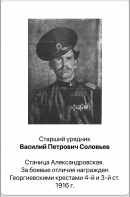 Старший урядник Василий Петрович Соловьев. Станица Александровская. За боевые отличия награжден Георгиевскими крестами 4-й и 3-й ст.