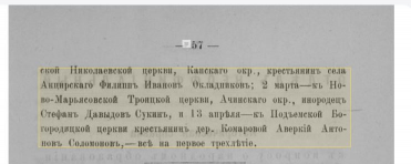 1895 года утверждены в должности церковных старост: 25 февраля .......... к Анцирской Николаевской церкви, Канского окр., крестьянин села Анцирского Филипп Иванов Окладников