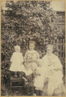 В общем, я еще раз все обдумал и пришел к такому мнению. Люди на фотографии действительно близкие моего родственника, не зря же с тех времен у него остались только 2 вещи - эта фотография и карманные часы отца. Датировка первоначально была определена рандомно, исходя из того, что на руках матери он сам, 1917 года рождения (хотя раскопки в архиве показали, что с датой рождения, которую он сам в дальнейшем указывал 31 августа, родственник привирал намеренно или по незнанию). Поэтому предполагаю, что старшая девочка просто племянница (выбор пока велик, чья дочь: учительницы Синевской земской школы Анны Александровны Соколовой, профорни церкви села Рождествено Александры Александровны Соколовой (это сестры матери детей), личного почетного гражданина Николая Алексеевича Ильинского или еще одного сына псаломщика села Алмазово Богородского уезда Василия Алексеевича Ильинского (это братья отца детей). Миль пардон, что так подробно, но может потом кому-то пригодится при поиске фамилий или мест  Датировка фотография снижается до мая-июня 1915 года. Женщина действительно Ольга Александровна (не соответствующее вроде бы годам рождения лицо можно объяснить далеко не первыми ежегодными родами и тем обстоятельством, что в 1908 году она потеряла первенца Сашу, а в 1910 году Сережу, в честь которых назвали будущих детей), беременная не Александром, а Сергеем, родящимся 11 сентября того же года. Младенец на руках - Константин, которому месяцев 8-9. На стуле в платьице - двухлетняя Раиса. В полосатой рубашке - трехлетний Виктор. Серафиме 4 года, она возле матери с веткой сирени в руках. Идея сложилась, когда вчера сидел с беременной женой, годовалой дочкой и старшими погодками 3 и 4 лет, а в это время мне понадобилось написать еще одному из детей от первого брака, десятилетнему сыну