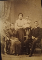 Здравствуйте! Помогите, пожалуйста, определить по фото сословие и примерный год этих фото. На фото справа, где молодой человек и молодая женщина вдвоём, женщина - моя прабабушка, 1896 года рождения. Спасибо!