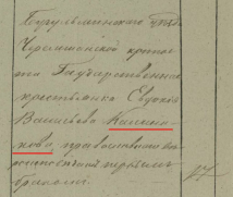 Помогите пожалуйста прочитать, Калиникова или Колесникова? Что это может быть фамилия или отчество отца?