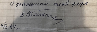 Сергей, благодарю Вас, что выставляете эту находку. Вы волшебник! У меня прадедушка по маминой линии - Громов Иван Никифорович из села Горькая Балка, 1905 года рождения. После вашего сообщения пару месяцев назад считала вероятность того, что на население ок. 4197 чел будет еще один Громов Иван Никифорович. Сегодня утром в семейных архивах нашла письмо его брата, где он сообщает о смерти Ивана Никифоровича. Там подпись В. Убейк (см. фото)