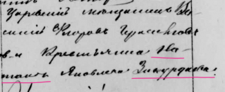 Naughty_wave написал:[q] Помогите пожалуйста прочесть восприемников. Деревни ??? Волныской губернии крестьянина Стефань Иоанновь Очерейко (?) и жена мещанина ??? Искрицкаго Ефросиния Григориева[/q]