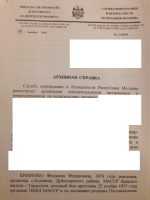 Отправлял поименный запрос по почте По почте пришел ответ В не номер дела очень краткие биографические данные Статья обвинения Приговор Инф по реабилитации Было это года три назад Сейчас не знаю как получить видимо писать в нац архив