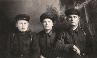 Пользуясь случаем, размещаю ещё одно фото 1940 года, на котором изображены наши родственники Кубатин Н., Кубатин И, Гладченко Н. (имена, к сожалению, не расшифрованы). По версии моего отца - слева тот же Николай Кубатин, что был на первом фото. На воротничке сидящего справа Гладченко Н. буквы "ТКК". Что это означает? В пользу принадлежности его к кавалерии говорит наличие шашки. Верно ли мое предположение? Кроме того, есть версия и казачества (спорная). Помогите разобраться, пожалуйста.