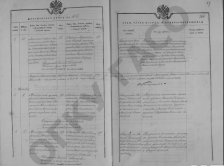 Домов или дворов Мужска пола Женска пола Лета о рождения Мужска пола Женска пола Духовные и их домашние 1 Священник Феодор Феодоров сын ВЕРБИЦКИЙ 54 1 жена его Марфа Василиева 51 2 Исправляющий д.псаломщика Николай Антониев БАРЗЫЛОВИЧ 42 2 Жена его Анна Константинова 41 3 Дети их: Иоанн 17 4 Андриан 9 5 Василий 7 6 Григорий 5 3 Ксения 2 7 Исправляющий д.псаломщика Иаков Иоаннов ДЖУНКОВСКИЙ 31 4 жена его Марфа Иванова 33 5 Дети их: Екатерина 10 8 Василий 8 6 Татиана 6 7 Варвара 4 8 Анастасия 2 9 Заштатный священник Василий Никифоров сын ЦЫТОВИЧ вдов 84 9 Умершаго диакона Антония СТРАТОНОВИЧА жена Евфросиния Петрова вдова 44 10 Дети ея: Татиана 17 11 Анна Антониевы СТРАТОНОВИЧЕВЫ 12 Заштатные 12 Бывшая просфирня Евдокия Василиева СТРАТОНОВИЧЕВА вдова по 1му браку 69 13 дочь ея Параскева Василиева СТРАТОНОВИЧЕВА дев. 42 Села Лялич военные и их домашние 1 10 Унтер офицер Василий Павлов ШУРАНОВ 46 14 жена его Екатерина Михайлова 36 11 Дети их: Петр 18 Екатерина 12 Никита 7 Василий 5 Мефодий 1 2 16 Отставного кандидата жена Александра Иванова САПРАНЦОВА вдова по 1му браку 60 15 сын ея Иосиф Василиев 30 17 жена его Мария Ильина 30 16 дети их: Петр 8 18 София 7 17 Иаков 6 19 Ольга 4 20 Екатерина 2 3 18 Солдат Андрей Георгиев ЕВЛАНОВ 59 21 жена его Ксения Филиппова 58 19 дети их: Михаил 24 20 Лаврентий 16 22 жена Михаила Татиана Василиева 23 23 дети их: Ксения 3 24 Мария 1 4 21 Солдат Киприян Алексеев ЕВЛАНОВ 47 25 жена его Елисавета Феодорова вторая 27 26 дочь его 1го брака Елисавета 8 27 дети их: Наталия 5 22 Андрей 1