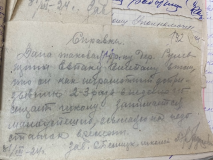 Телефонограмма Прошу о скорейшей высылке в Сенненский военный комиссариат Ивана Никитина Горбачева и Тимофея Прокофьева Метелицу (в оригинале Мятелицу) для отправления на инструкторские курсы в г. Москву. уездный военный руководитель Смольницкий