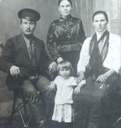 Здравствуйте! На этой фотографии возможно мой прадед Левин Степан, по нему пока никакой информации не нашли, его жена Левина Анисья Логиновна - девичья фамилия Бурмакина, которая родилась в д. Нагорное (Бугульминский уезд) в 1896 году, у них родился сын, мой дед - Левин Владимир Степанович в 1926 году в г. Бугульме, его родители развелись, когда ему было 4 года. Может на этой фотографии кто-нибудь узнает своих родственников? И еще подскажите пожалуйста, где можно найти метрики о рождении за 1926 год по г. Бугульме?