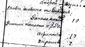 Ann_Der_Berater написал:[q] Добрый вечер! помогите пожалуйста прочитать из ревизской сказки 1834 года Кадниковского уезда. то что слева - "переведен из деревни ... 1825 году" - не могу разобрать название деревни и то что справа - поняла только то, что жена Сергея И в целом подскажите как правильно трактовать запись "Якова Сергеевича зять Сергей Иванов" - но выше строчкой там указан Яков Семенович, это к нему относится и просто вероятно отчество перепутали? Заранее спасибо за помощь и подсказки [/q]