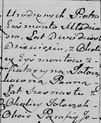 Урожденный Петр Эйсымонт юноша двадцати лет _____ из околицы Эйсымонты с Катаржиной ____ _____ панною шестнадцати лет из околицы Толочки Оба из парафии Озерное