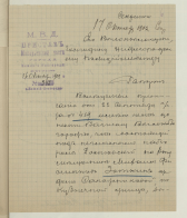 Вследствие предписания от 22 сентября сего года за №419 имею честь донести Вашему Высокоблагородию, что состоящий под негласным надзором Ростовский на Дону мещанин Михаил Филиппов Зоткин из дома Сапожниковой по Кузнечной улице выбыл в село Кстово *** *** на зимовку пароходства Компании «Надежда» 15 октября, о чем мною *** *** за №342 сообщено Приставу 1