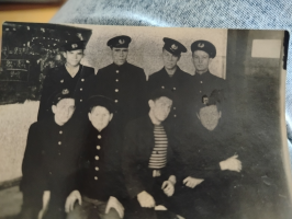 Здравствуйте! Помогите пожалуйста по фото определить примерно время, когда фото сделано, и ситуацию, т.е. являются ли люди на фото военными моряками, может ли это быть фото экипажа или преподавателей и учеников мореходного училища, например.