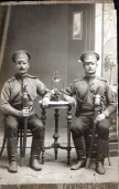 [q] Здравствуйте, может кто-то может помочь определить где мог служить мой прадед (по форме определить вид войск и т.п.). Сохранилось его фото с товарищем в форме. Фото скорее всего конца 1890-начала 1900-х гг.