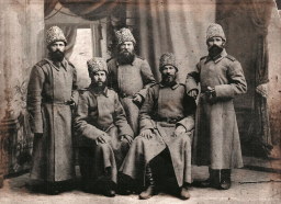 Уважаемые форумчане! Помогите побольше узнать про прапрадеда. На фотографии он стоит слева. На погонах присутствующих с трудом можно разобрать цифру "49" или "549". На уголке паспарту есть штамп "Хвалынск. Фотография Аршинова". Прапрадед по МК уже с 1899 г. в возрасте 25 лет числился запасным рядовым. Непонятно, когда он успел послужить, если на фото в военной форме. Возможно, участвовал в 1-й мировой войне, но точно вернулся домой, потом жил обычной крестьянской жизнью в Стрелецкой слободе Курмышского уезда Симбирской губернии.