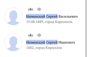 У меня в древо добавлено 2 Сергея, один потомок Василия Васильевича, второй потомок Григория Андриановича.
