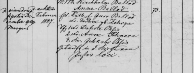 Помогите прочитать запись от 1887 года приход Саласпилс меня интересует информация о родителях, есть ли тут имена? Анна Баллод вероятно моя прапрабабушка Родилась лютеранкой, вышла замуж приняла христианство, потом отчество было Ивановна Мне бы понять имя отца было Йохан или могли дать при крещении самое распространенное Иванова?