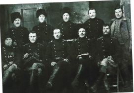 lebarov написал:[q] Здравствуйте, интересуюсь родом войск на фотографии, более подробно хотел бы узнать про самого левого человека в нижнем ряду, про его награды в том числе.