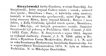 Посмотрите, пожалуйста, информацию о роде Стржижовских в 230 дворянском фонде Хмельницкого архива. В Списке дворянских родов Подольской губ. 1897 г. есть несколько родов Стржижовских (6.1849)