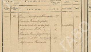 156 Андрей Петров Гороховский (примерно 1786) жена его Домна Андреева (примерно 1795) дети их Данило (1813) Иван (1815) Прокопий (1820) Феодосия (1816) Наталья (1821) Васса (1831)