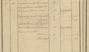 118 Петр Спиридонов Гороховский (примерно 1756) его дети Андрей Петров Гороховский (примерно 1786) жена его Домна Андреева (примерно 1795) дети их Данило (1813) Феодосия (1816)