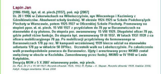 Здравствуйте. Подскажите где я могу найти информацию или может кто-то видел такую фамилию и имя Łapin Jan 1906 г.р 1924-1925 был в школе Подхорунжих Пехоты в Варшаве 1924-1927 в школе офицеров пехоты. 15.08.1927 назначен в 78 пехотный полк в Барановичах.