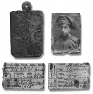 Летом 2001 года в Москве на чердаке идущего под реконструкцию особняка постройки 19 века членом ИИО "Клуб "Раритет" Александром Барановым был найден жестяной квадратный медальон с двумя листками форменной записки и небольшой фотографией внутри. Находка была идентифицирована как смертный медальон, который с конца 1914 года выдавался всем военнослужащим действующий армии. Однако ни в одних доступных нам мемуарах о событиях 1914/1917 года упоминания о таких медальонах нет. Находка такого медальона, тем более с сохранившимися внутри записками / большая редкость. Медальон принадлежал Ивану Павловичу Черенкову, уроженцу Московской губернии, Серпуховского уезда, Хатуньской волости (ныне Чеховский район), села Барыбино Иван Павлович Черенков родился в 1893 году, православный, в армию призван в 1915 году. Скорей всего медальон был оставлен на чердаке участником боев в Москве в октябре 1917 года.