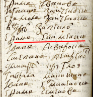 Здравствуйте! Прошу помочь прочитать отчество женщины: записана в строке под номером 39 (подчёркнуто красной линией) - "Клима жена Настасия ... ". Документ - Ревизская сказка 1812 года, Черниговская губерния.