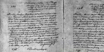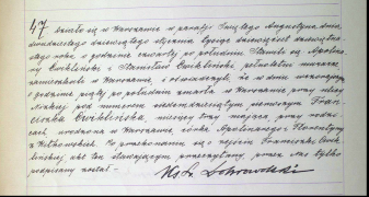 Жених - Блажей Цвиклинский, сапожный подмастерье 34 лет, родился в Российской империи в городе «Калудзе» (в тексте так, возможно, после двойного перевода так записана Калуга), сын покойных Станислава и Виктории из Роганьских (Rogańska), живет по ул. Смачей (Smocza) № 5080 Невеста - Элеонора Дорота Пиотровская, служащая 36 лет, рождена в Варшавской губернии в деревне Суходоле, дочь покойных Иосифа и Марианны, урожденной Закржевской, живет по ул. Огродовой № 871